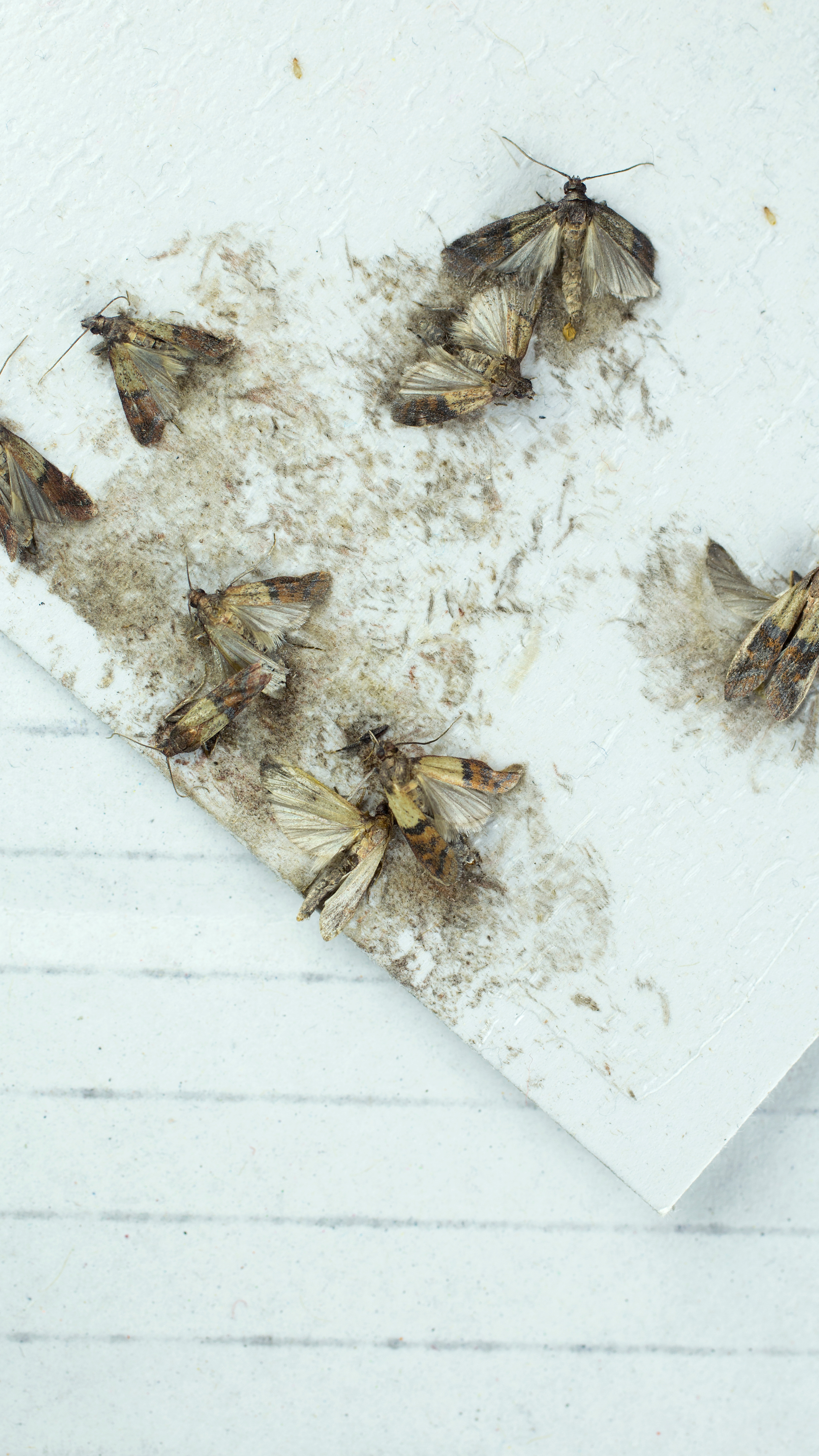 Infested food should be disposed of to stop the moths from multiplying and to ensure the effectiveness of the parasitic wasps.